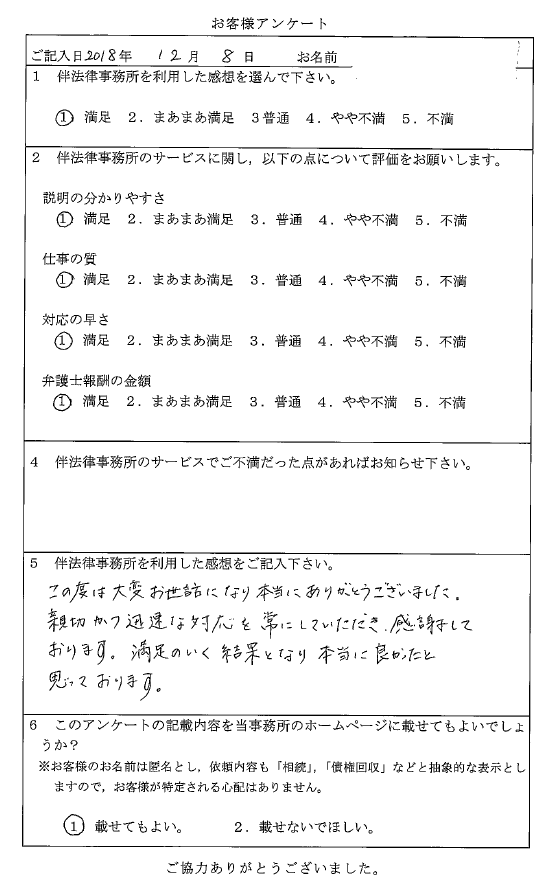 弁護士業務では①お客様の期待に沿う徹底した調査,②お客様が納得できる提案力,③お客様が安心して任せられる確実かつ迅速な処理の3つを心がけており、実際に業務に対しての評価も高い。