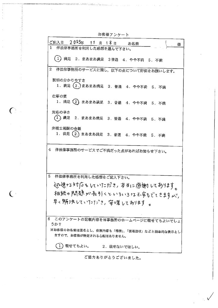 157 相続問題解決を伴法律事務所に依頼して本当に良かったと思います。