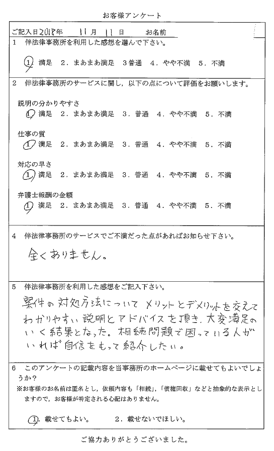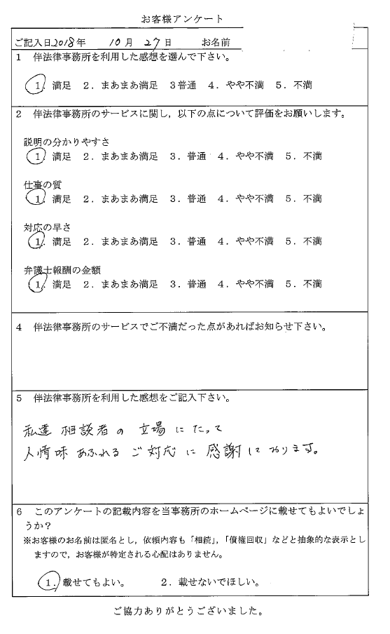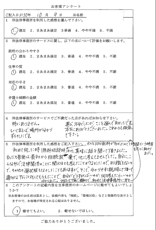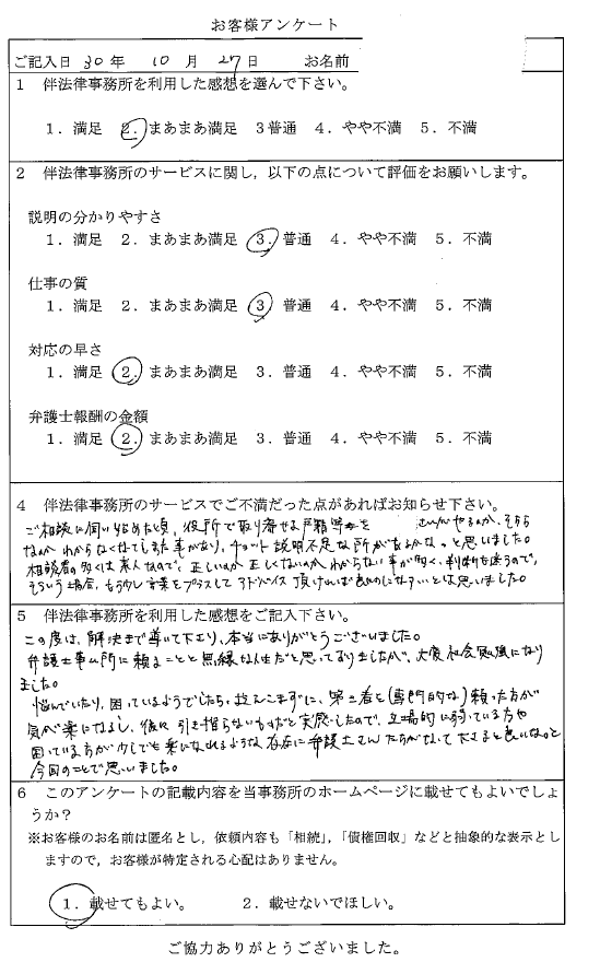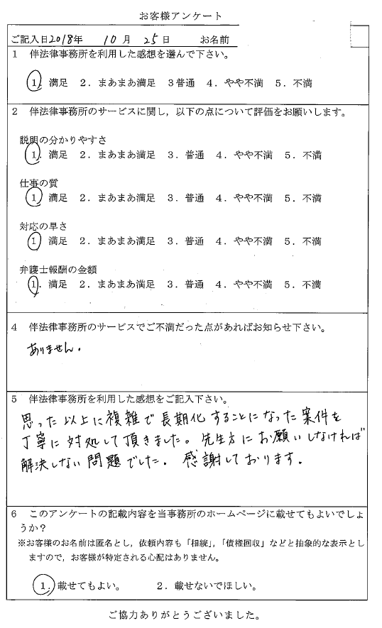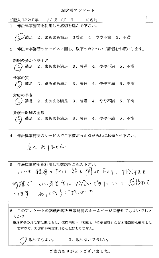 弁護士業務では①お客様の期待に沿う徹底した調査,②お客様が納得できる提案力,③お客様が安心して任せられる確実かつ迅速な処理の3つを心がけており、実際に業務に対しての評価も高い。