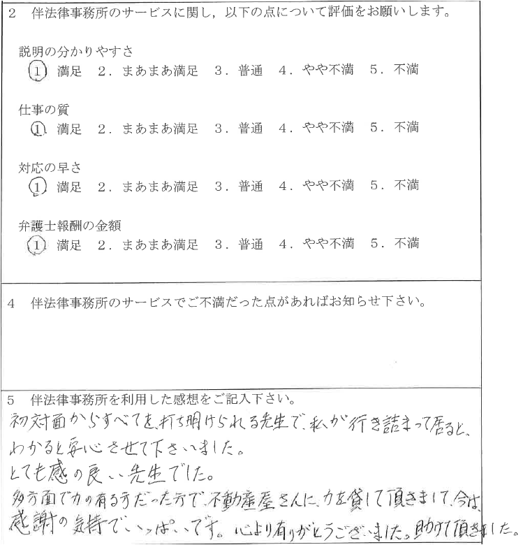 3.伴法律事務所のサービスでご不満だった点があればお知らせ下さい。