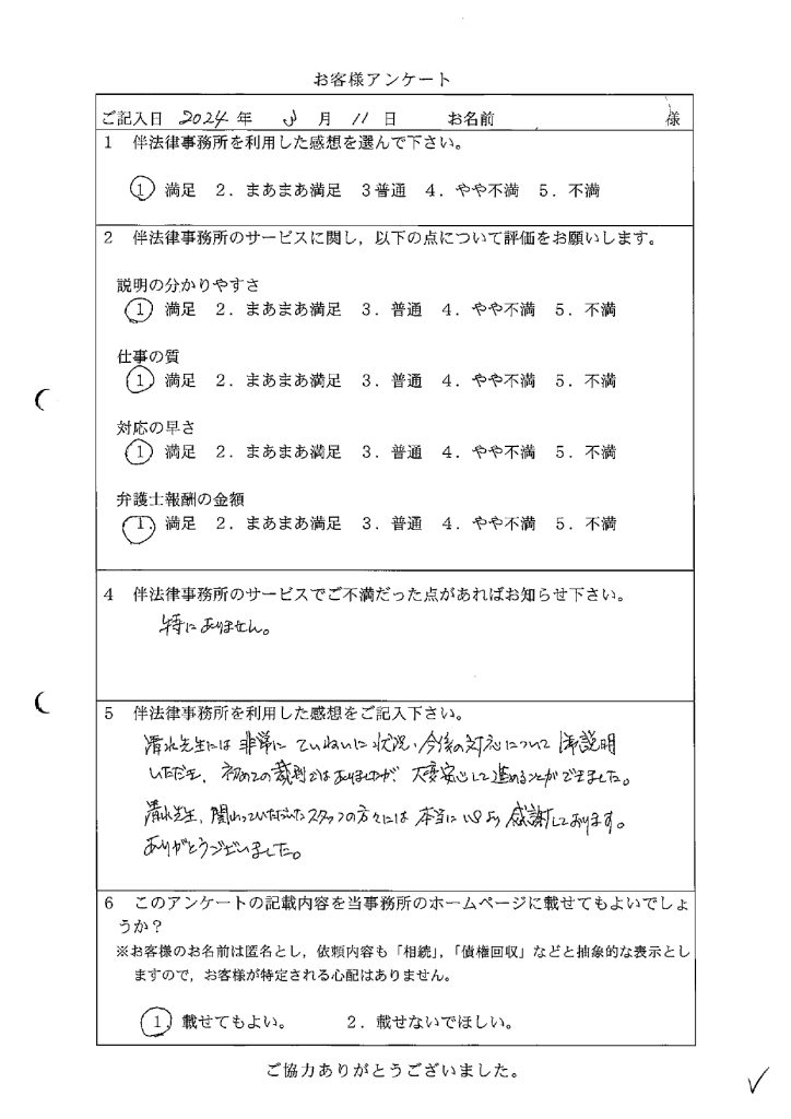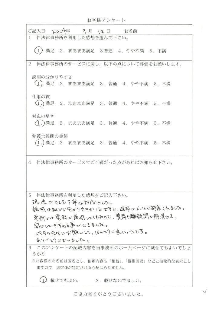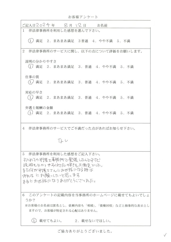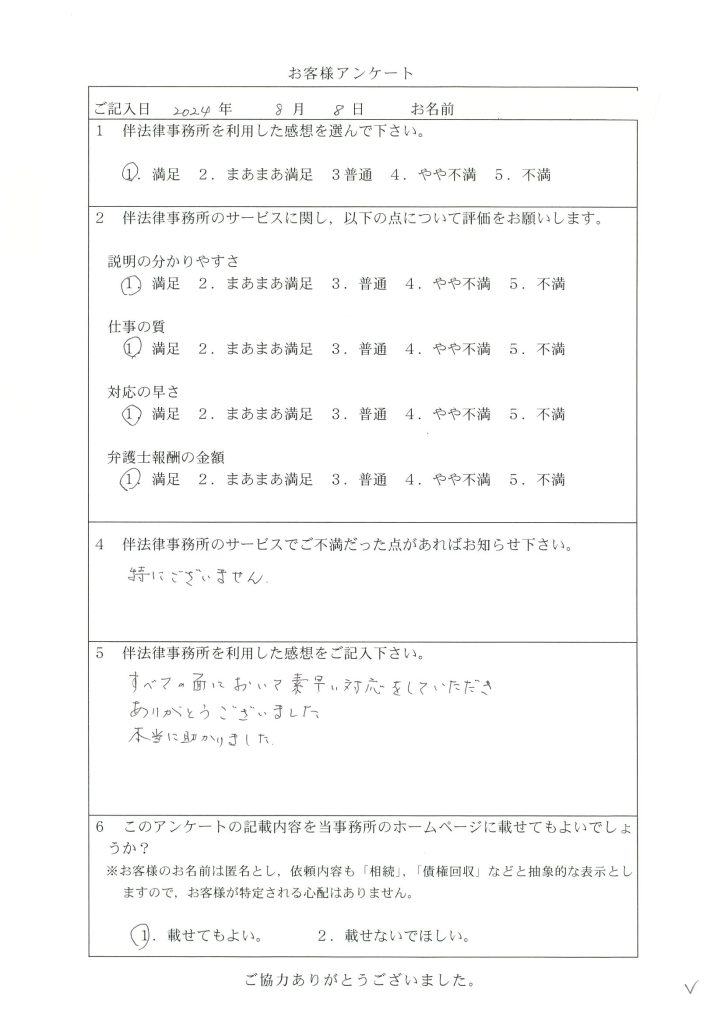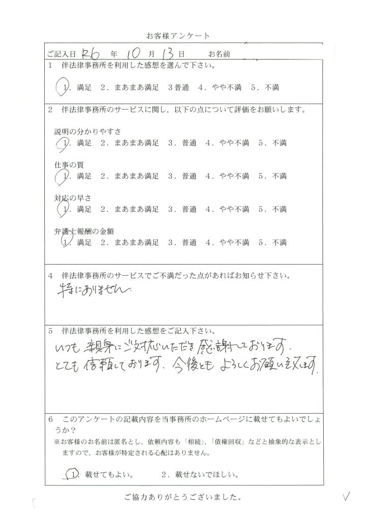 186 初めての弁護士事務所で緊張したけれど、説明も分かりやすく対応の早さも大満足でした
