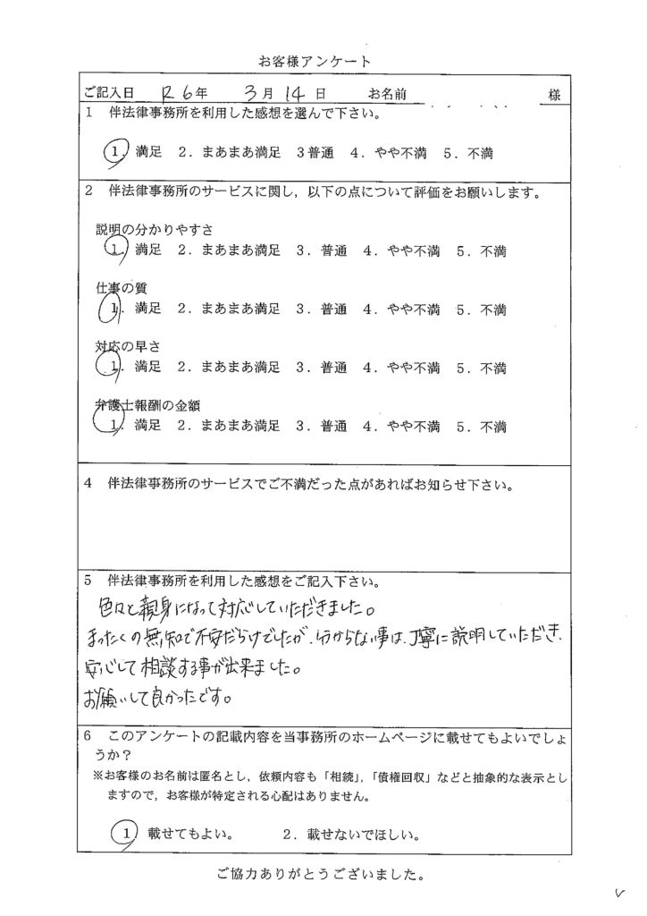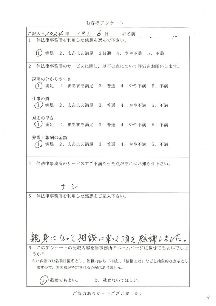 178 安心して相談する事ができました お願いして良かったです